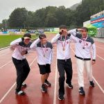 Mit Achilleas Tatsis (TSV Bernhausen, 2. v.l.) als Startläufer holte sich die 4x100m-Staffel Staffel der männlichen U16 der LG Filder dank einem tollen Schlussspurt