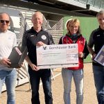 Die Spende des TSV Bernhausen ist beim TuS Ahrweiler gut angekommen, im doppelten Wortsinn. Zum einen, weil der Vorsitzende Jochen Köker den von der Bernhauser Bank bereitgestellten überdimensionalen Scheck über 4716 Euro am Samstag, 7. Oktober, sicher ins Ahrtal chauffiert hat. Und zum anderen, weil sich die Empfänger vom TuS Ahrweiler riesig über dieses Zeichen der Solidarität freuen.
