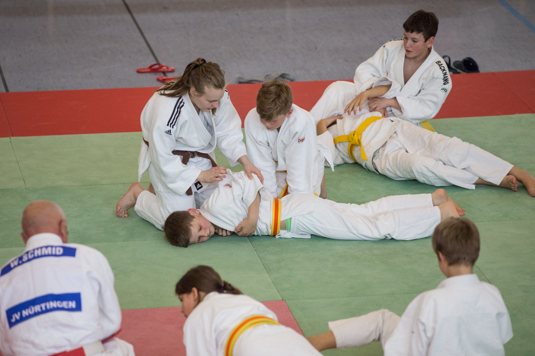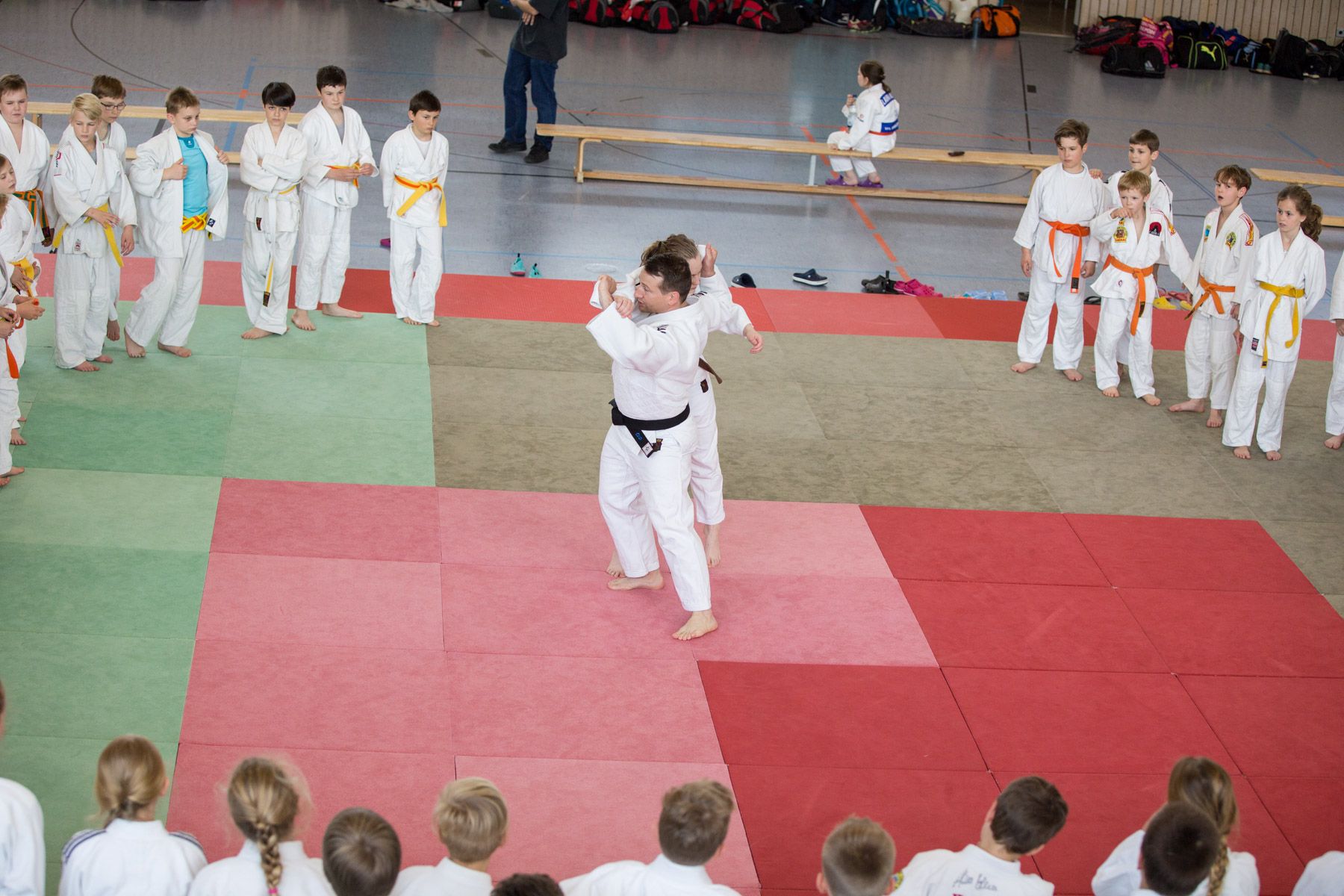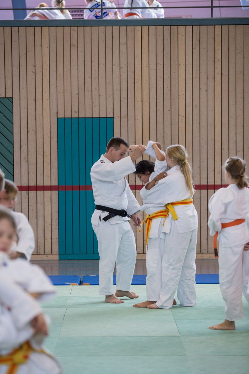Insgesamt 141 U12- und U15-Judoka übten zwischen 9:30 Uhr bis gegen 17 Uhr verschiedene Techniken im Stand- und Bodenkampf. Insgesamt fünf Trainer um den Haupttrainer Wolfgang Schmid (Inhaber des 6. Dan) leiteten die jungen Judoka an. Beim gemeinsamen Mittagessen gab es genug Zeit, um auch einmal Kämpferinnen und Kämpfer anderer Vereine kennen zu lernen und sich auszutauschen.