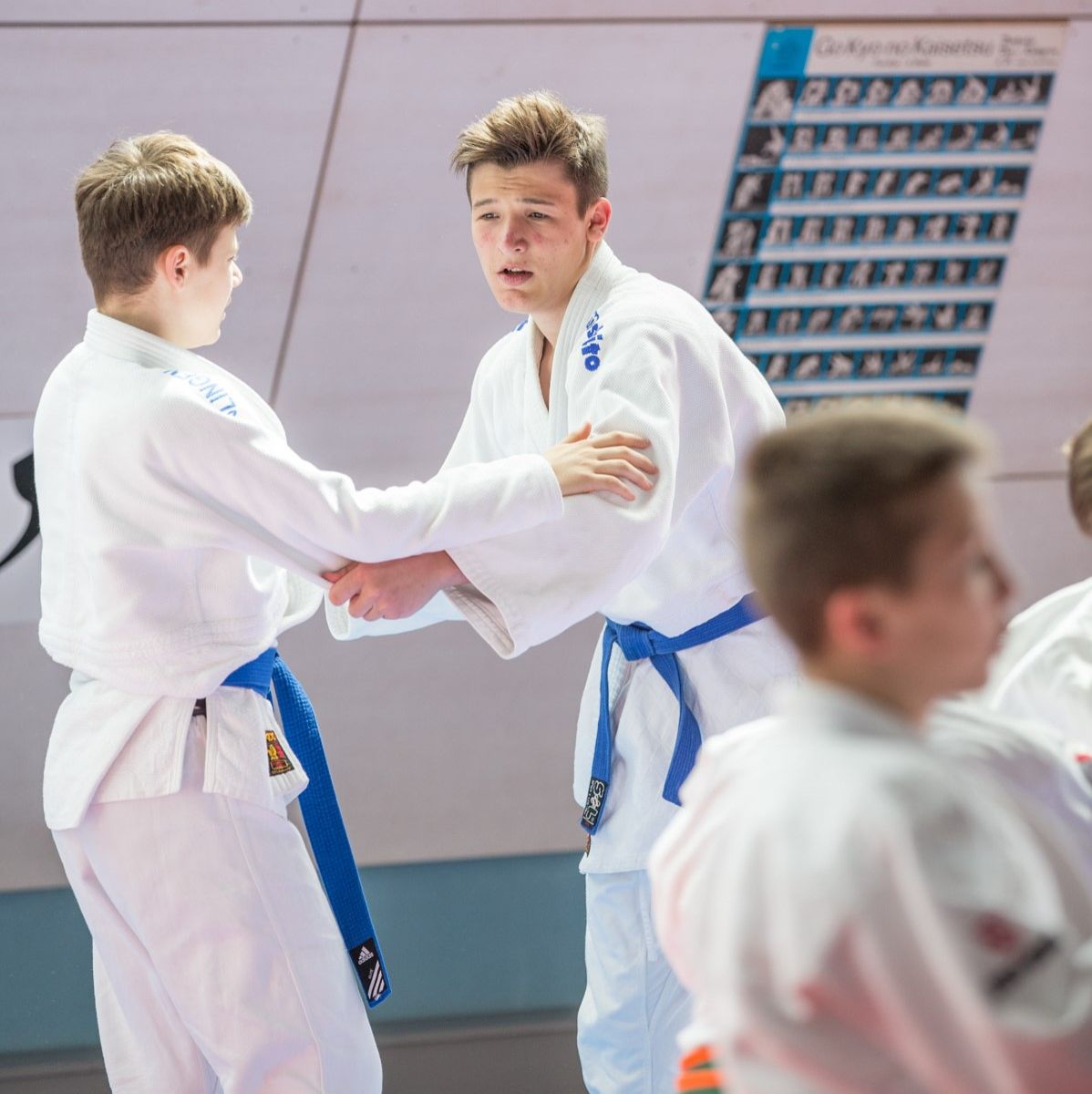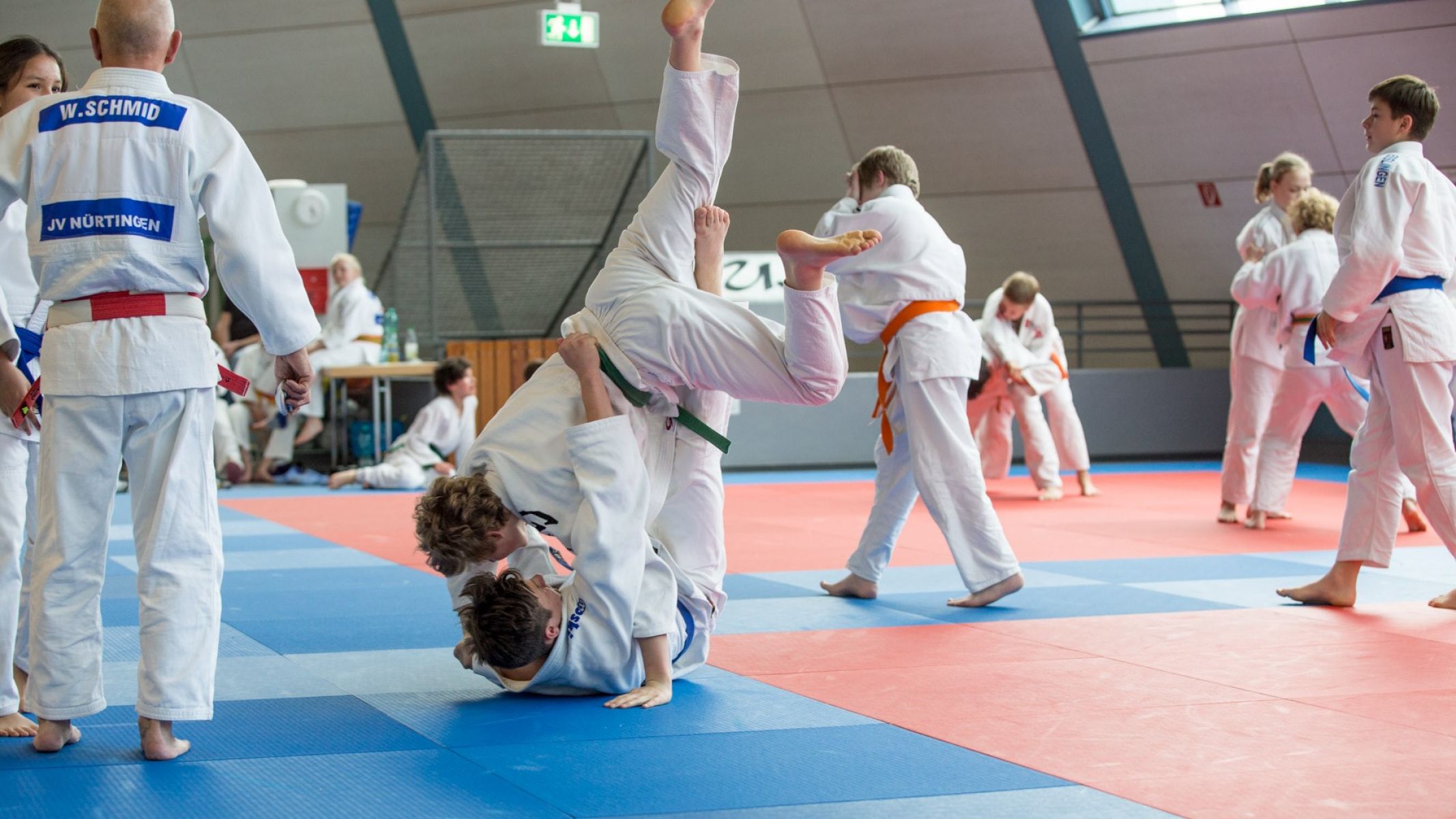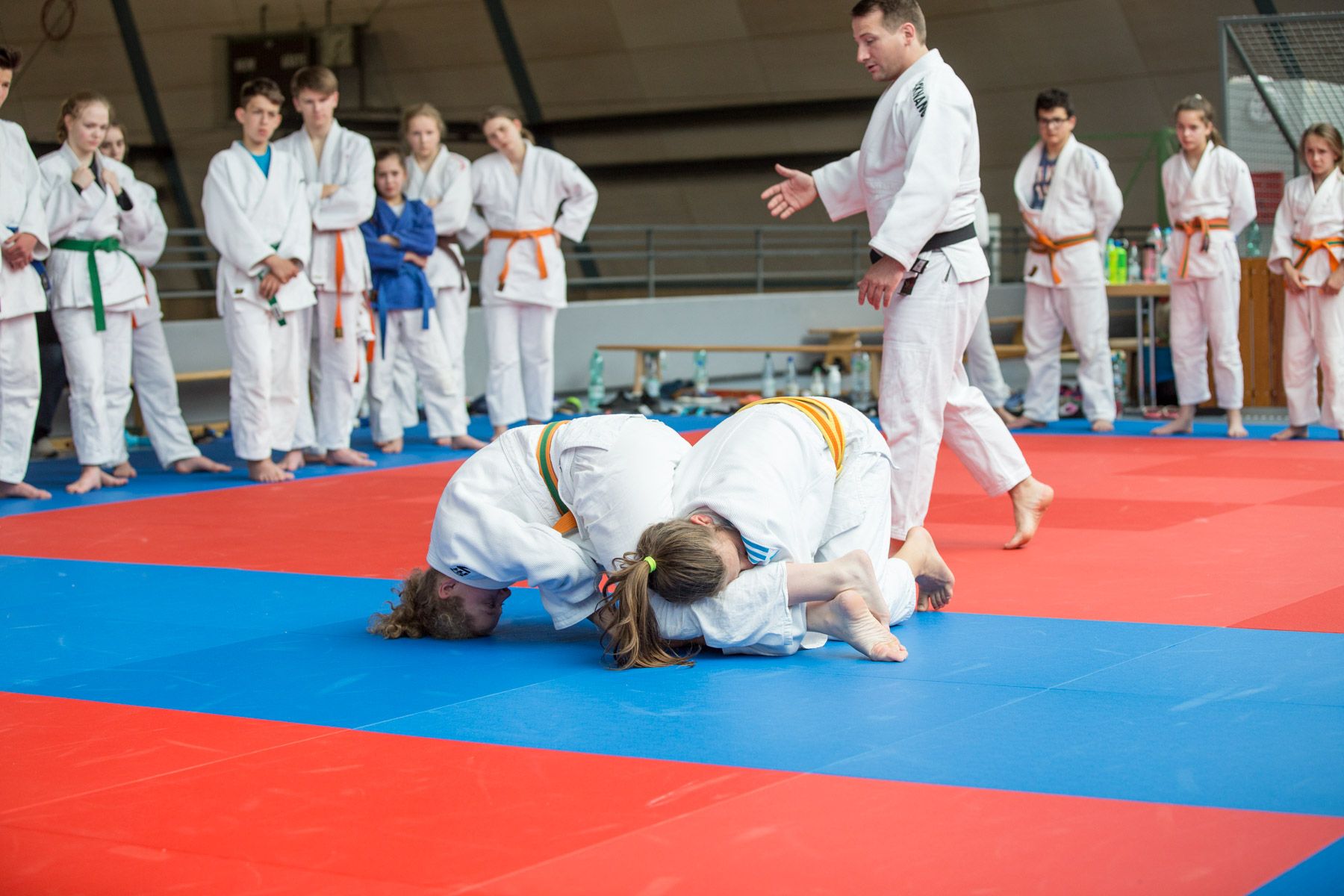 Insgesamt 141 U12- und U15-Judoka übten zwischen 9:30 Uhr bis gegen 17 Uhr verschiedene Techniken im Stand- und Bodenkampf. Insgesamt fünf Trainer um den Haupttrainer Wolfgang Schmid (Inhaber des 6. Dan) leiteten die jungen Judoka an. Beim gemeinsamen Mittagessen gab es genug Zeit, um auch einmal Kämpferinnen und Kämpfer anderer Vereine kennen zu lernen und sich auszutauschen.