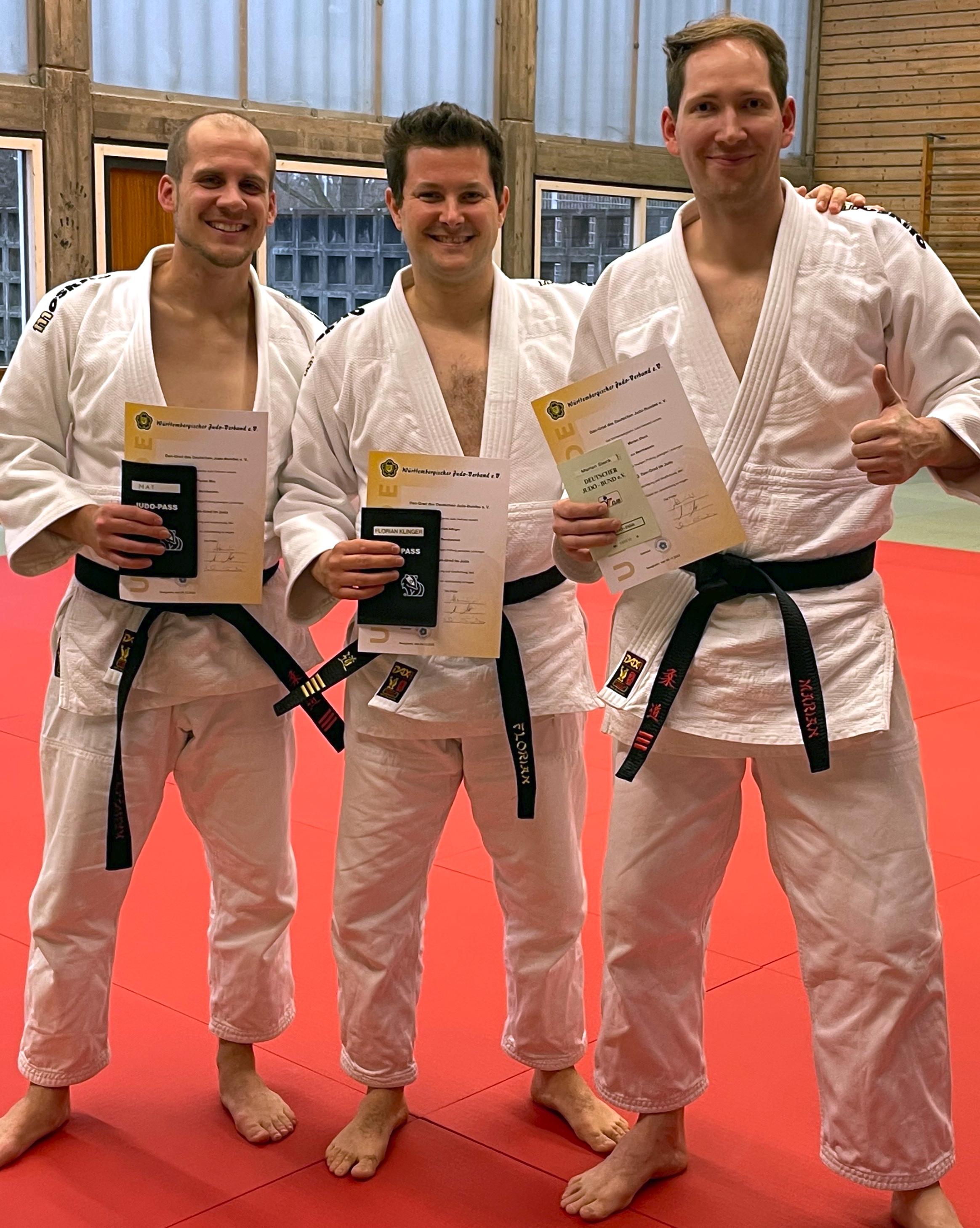 Unsere Abteilungsleiter Florian Klinger, Marian Steck und Florian May wurden am 04.12.22 von den drei Prüfern des württembergischen Judoverbandes in Besigheim geprüft.