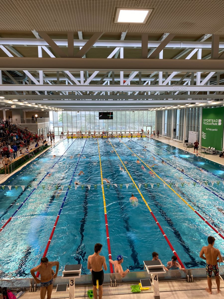 Clara und Tom startet mit den Jugenden C, D und E in Freiburg, die Jahrgänge 2010 und älter mit den TSVler Kalina, Matti, Mia, Milla, Tobias und Yanislav gingen an diesem Wochenende im bekannten Sportbad Neckarpark an den Start.