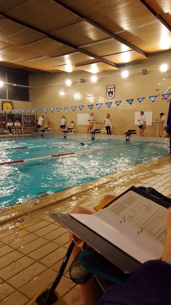 Vielen Dank an die Kampfrichter/innen Jens, Sabine und Ursula und vor allem an die Trainer Marc und Tom, die in jedem Lauf eine/n Schwimmer/in zum Stoppen und Beobachten hatten.