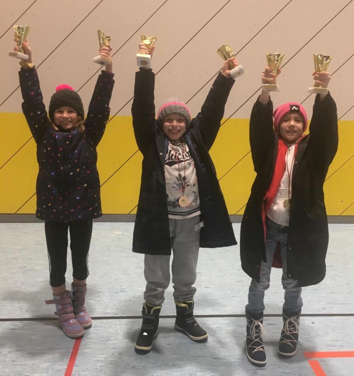 Ganz zum Schluss fand in der nebenan gelegenen Turnhalle die Siegerehrungen der Kombiwertungen statt. Eine Kombiwertung bestand aus 25m Beine, 50m und 100m einer Schwimmlage oder alle vier 50m Strecken. Hier haben unsere 11 Schwimmer und Schwimmerinnen 3x den ersten Platz, 3x den zweiten Platz und 1x den dritten Platz mit jeweils einem Pokal erzielt. Insgesamt war es ein sehr erfolgreicher Wettkampftag bei 30 Top 3 Platzierungen von 59 Starts.