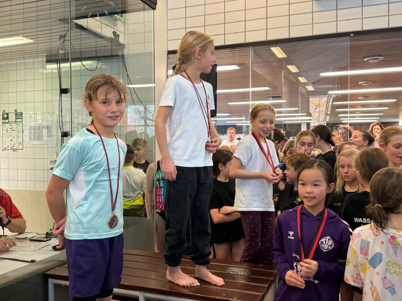 Am 03. Dezember fand das Adventsschwimmfest mit kindergerchtem Wettkampf in Plieningen statt. Hier gab es neben zahlreichen Bestzeiten und Podiumsplätzen, 6x Gold, 6x Silber und 4x Bronze, noch weitere Besonderheiten.