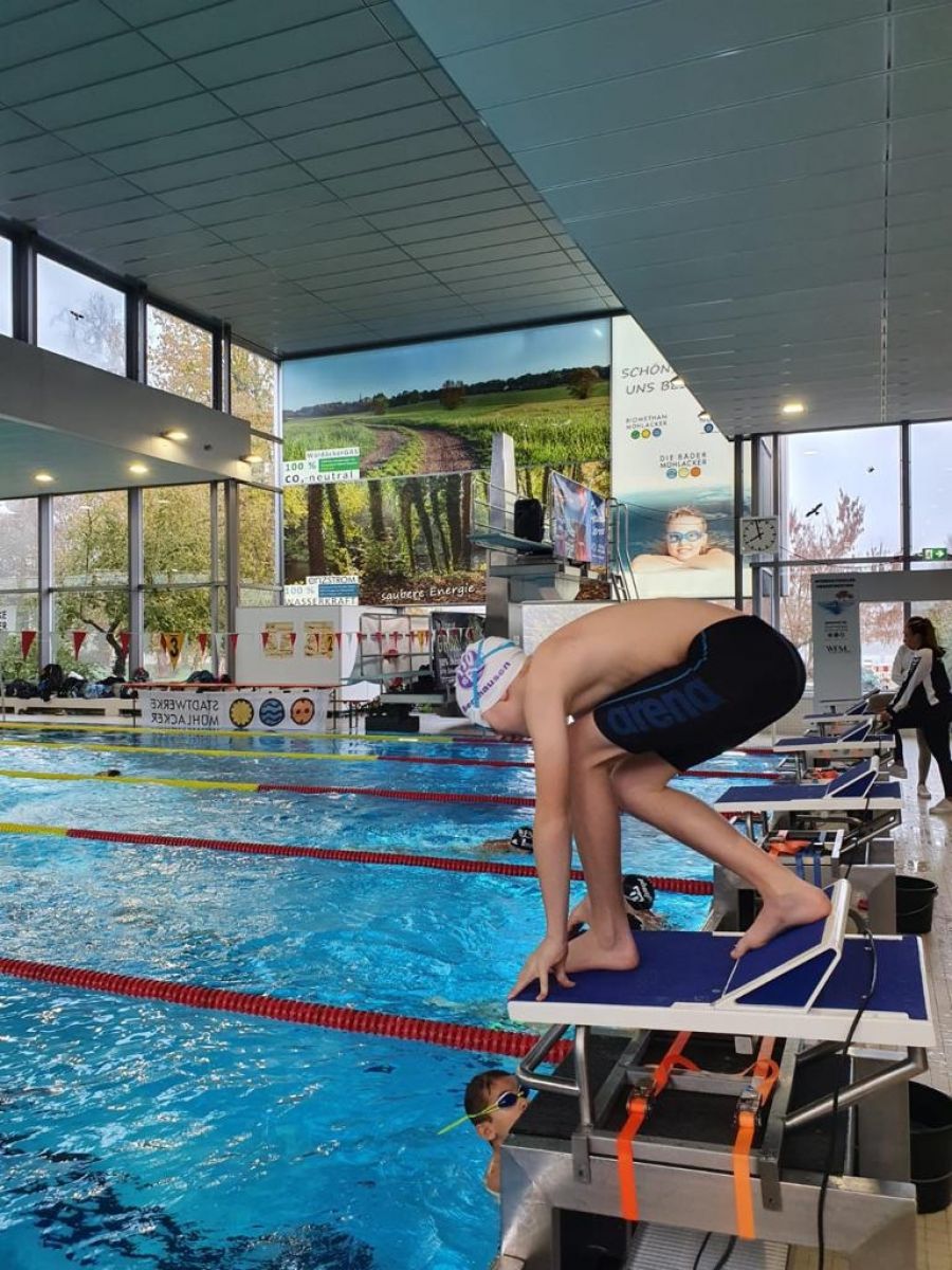 Die drei Leistungsgruppen Hechte, Delfine und LG1 waren am 5. und 6.11. beim 5. Internationalen Herbstmeeting in Mühlacker. Die Jahrgänge 2014-2011 waren am Vormittag dran, 2010 und älter am Nachmittag.