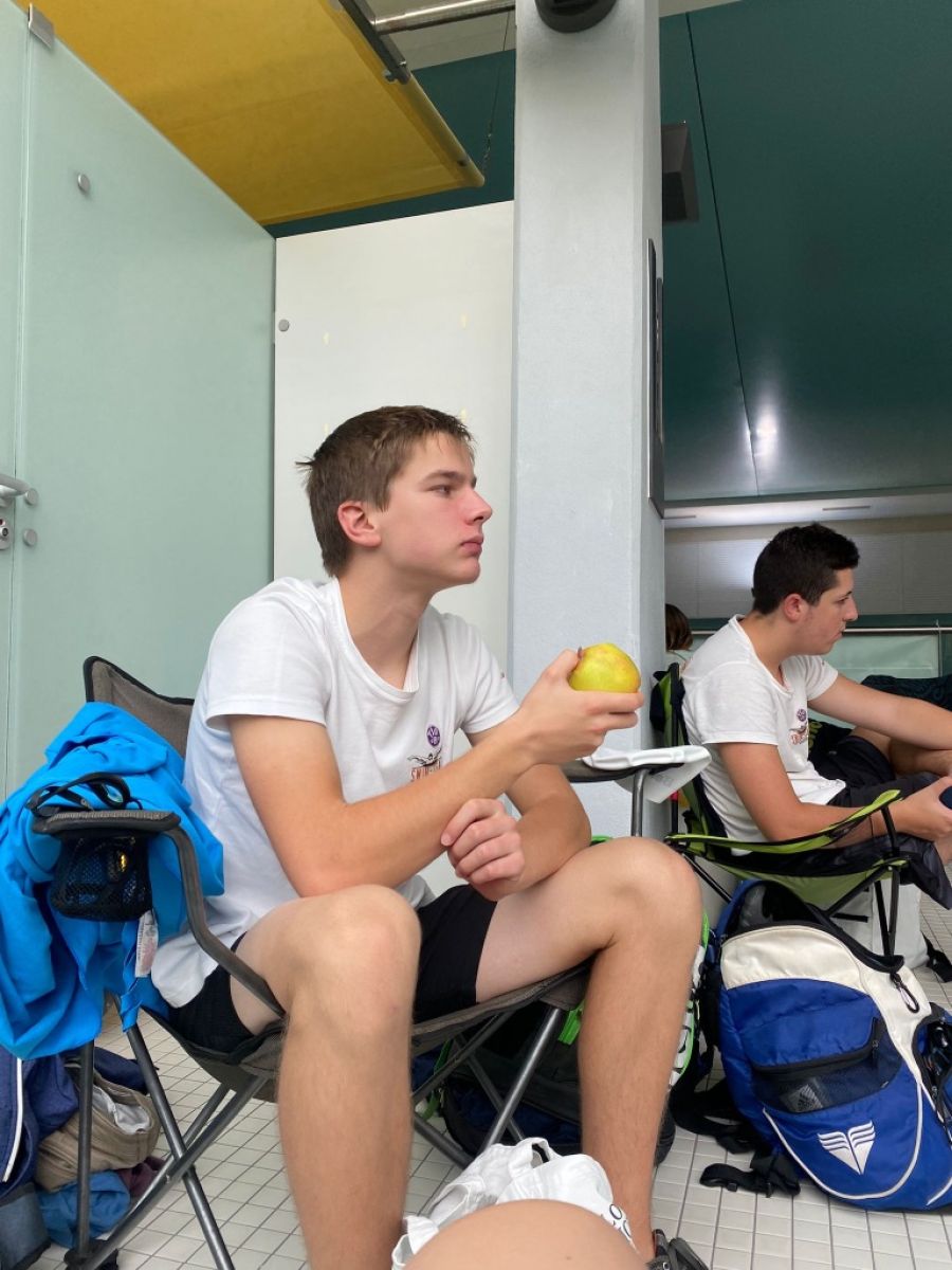 Die Stimmung war wie immer super, auch verstärkt durch unseren momentan verletzten Schwimmer Matti Maiero, der trotzdem als Unterstützung mitkam. Vielen Dank an Uli, die Betreuerin in der Turnhalle und natürlich auch an Tom für die Unterstützung am Beckenrand!