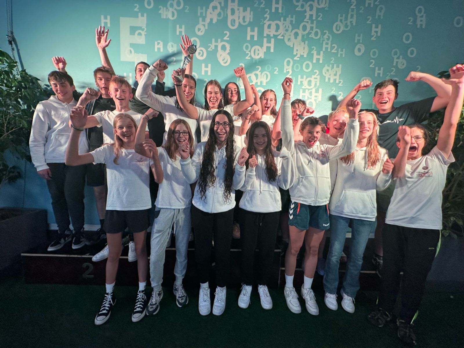 Gelungener Abschluss war dann noch der dritte Platz in der Mannschaftswertung, die Schwimmer/innen nahmen glücklich den Pokal entgegen.