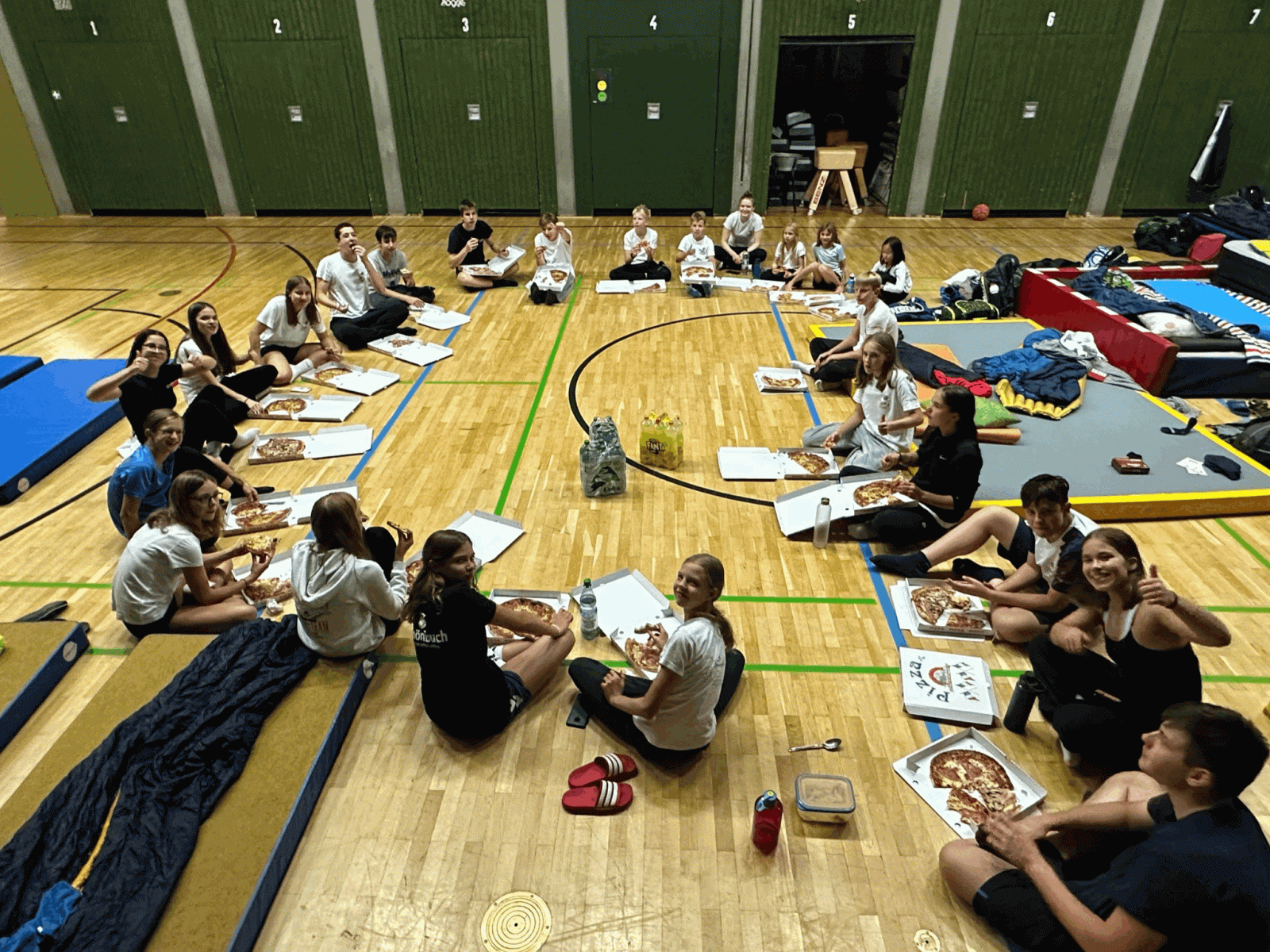 Wie im Jahr zuvor wurde das Angebot in der naheliegenden Turnhalle zu schlafen, angenommen. Auch unsere jüngsten Teilnehmer/innen Louisa, Lena, Luana und Paul waren mutig und übernachteten mit. Sie wurden gut von den „Großen“ aufgenommen. Vielen Dank an den SC Ravensburg und an Stefan, den Nachtwächter.