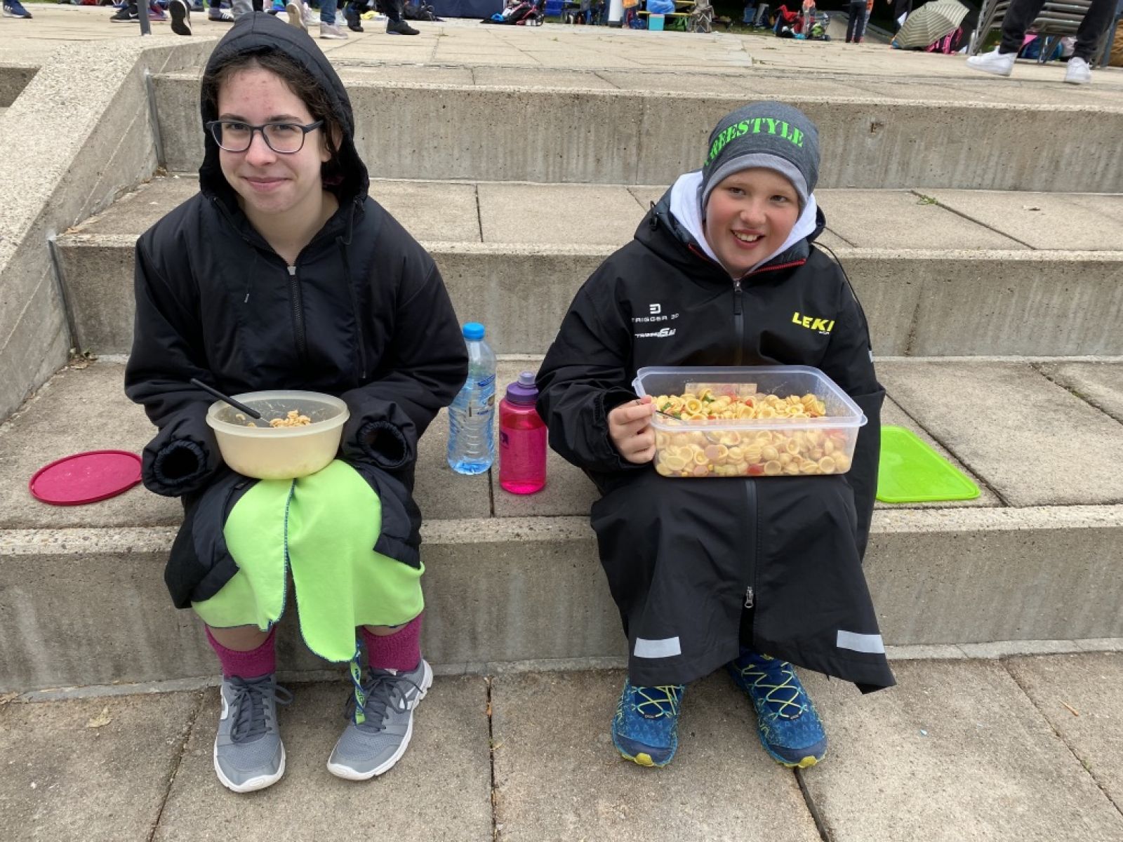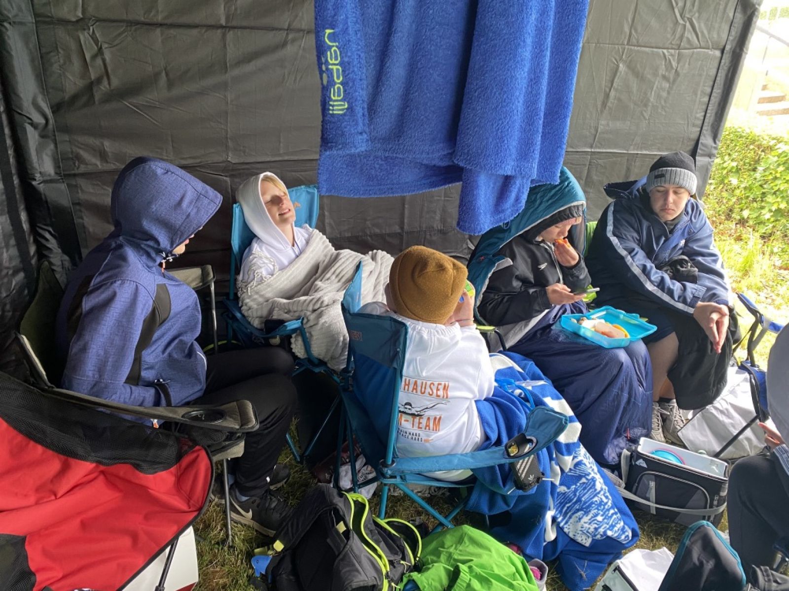 Samstags ließ sich die Sonne sehen mit frischem Wind, sonntags halfen Regenschauer den größtenteils frierenden Schwimmern nicht beim Warm bleiben. Gegen Ende schien wieder die Sonne, das Anstehen am Waffelstand wurde dadurch deutlich angenehmer.