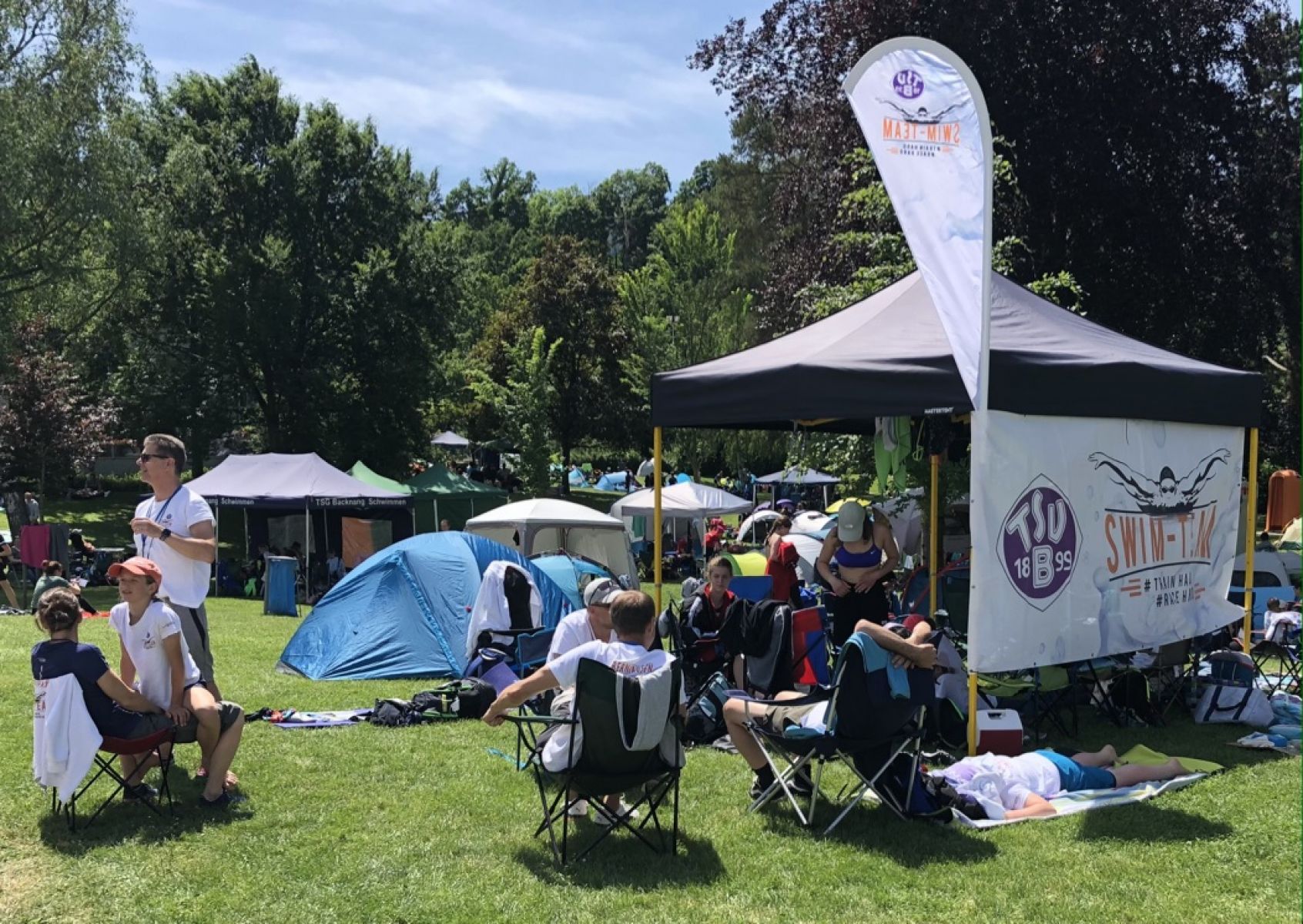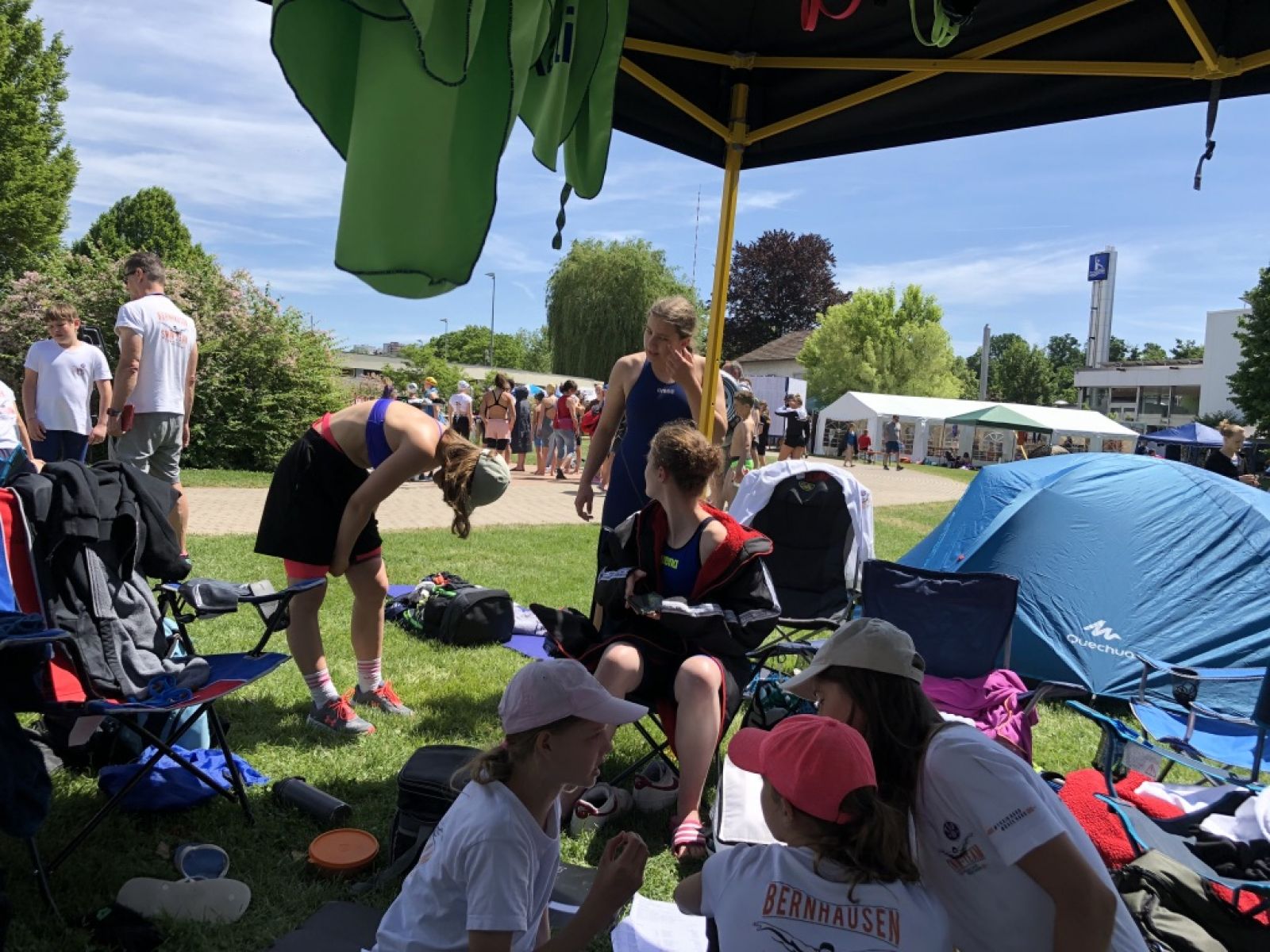 Das Team hatte sehr viel Spaß, auch an dem einen oder anderen Comics wurde geschrieben, die Veröffentlichung ist noch in Verhandlung. Freibadwettkämpfe mit optimalem Wetter sind immer gut für Ballspiele, Seilspringen und sich sonnen in den Pausen zwischen Starts.